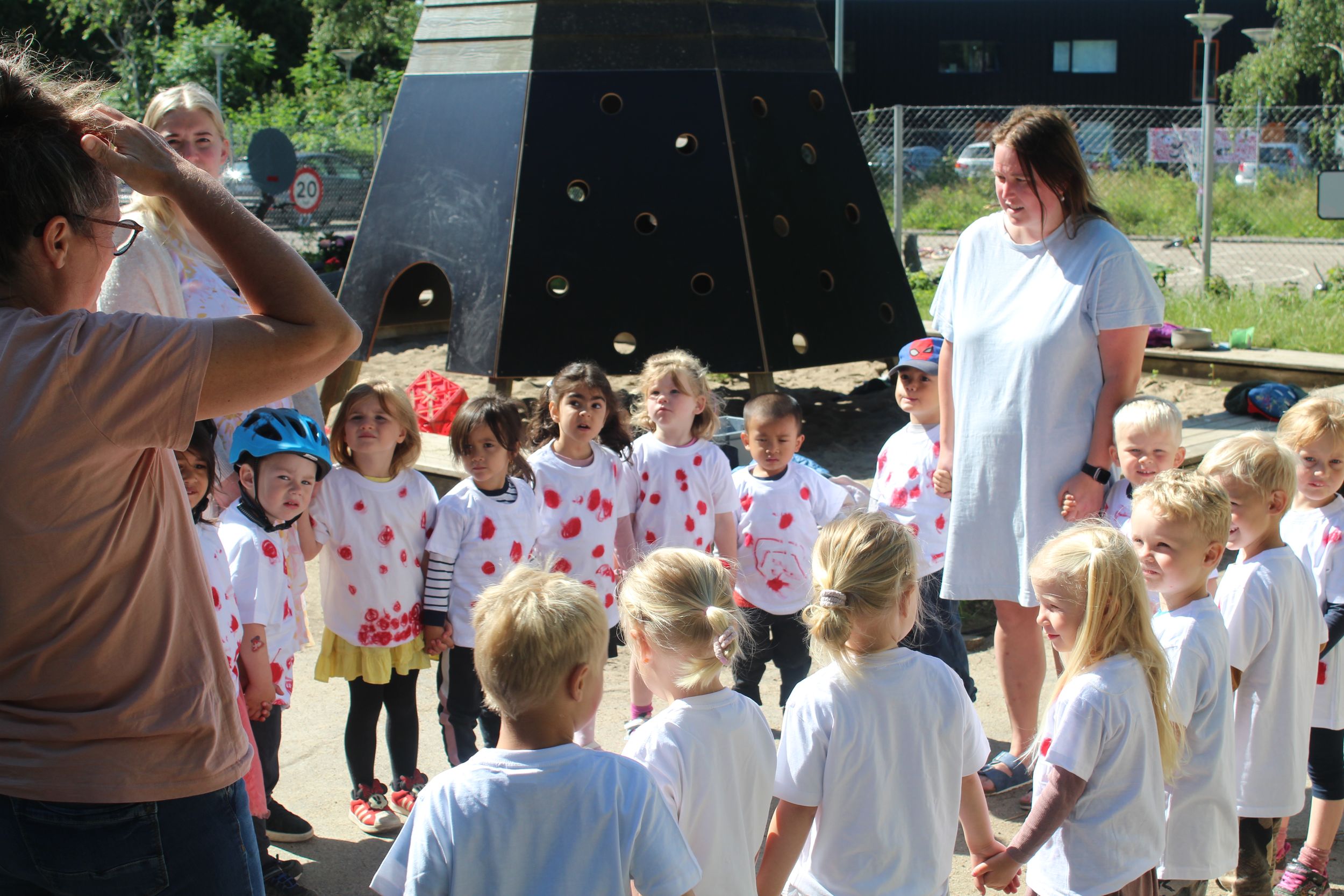 I dagene inden har børnene sat røde prikker på hvide T-shirt for at henvise til de tre bjergspurter, som Tour de France-feltet på 2. etape fra Roskilde til Nyborg møder i Odsherred lørdag den 2. juli.