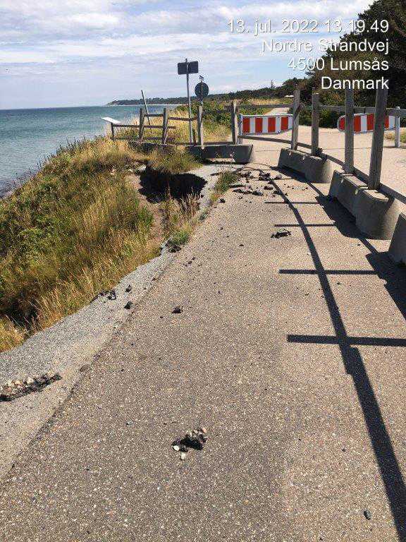 Den offentlige vej Nordre Strandvej, som bl.a. forsyner et sommerhusområde, har siden 2013 kun været en smal midlertidige kørebane, og blev i 2022 afspærret for gennemkørsel af forsigtighedshensyn.
