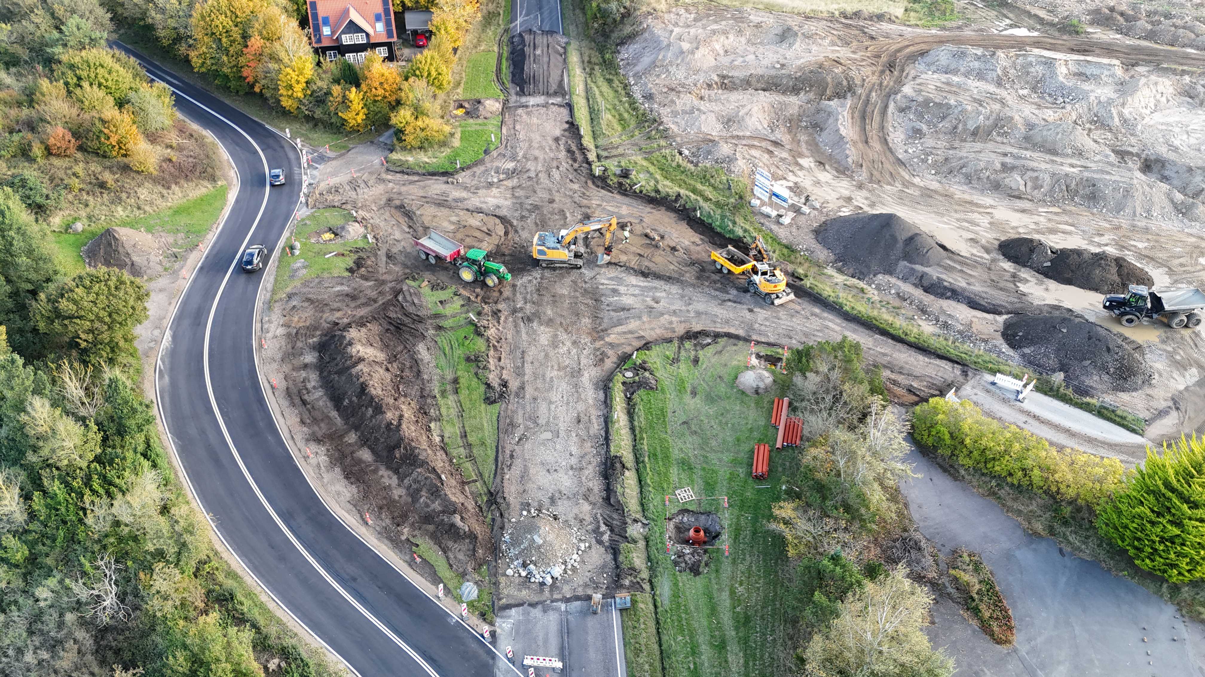 Ultimo august 2025: Rundkørslen er klar og fungerer fint. Der var lidt forsinkelse på skiltningen, men det er nu også i orden.