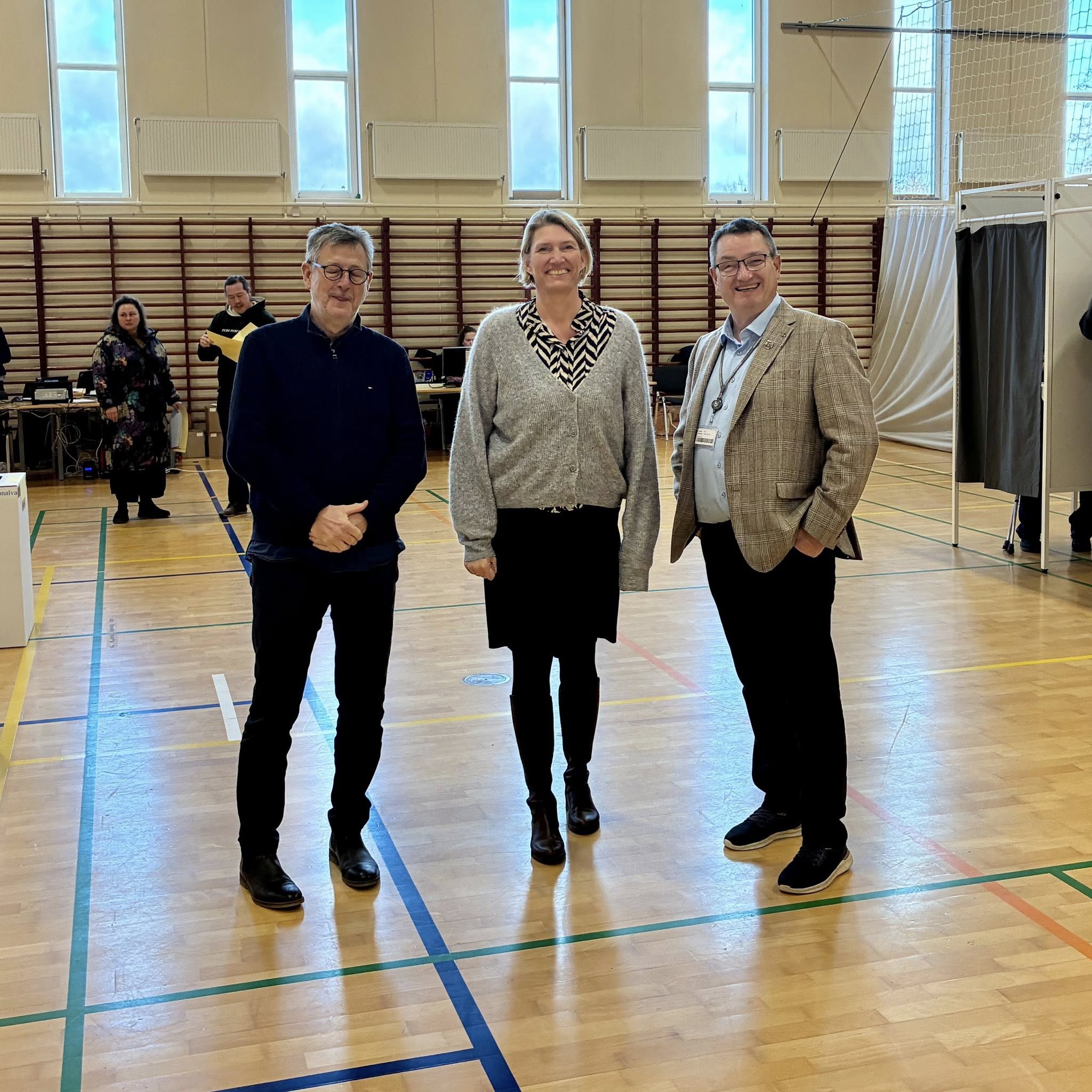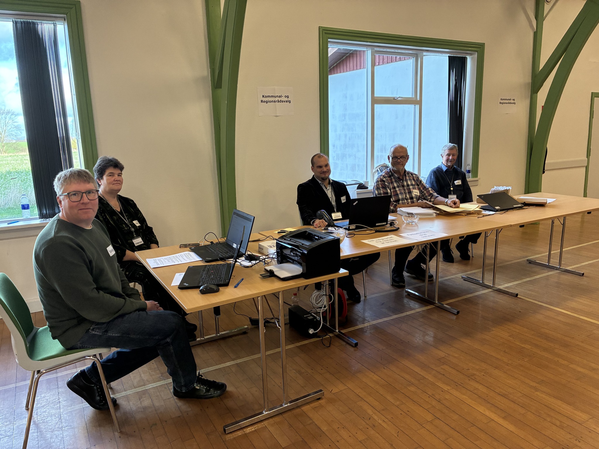 Kort efter kom kommunaldirektør Claus Steen Madsen og borgmester Karina Vincentz også forbi hallen i Herrestrup. Ikke for at stemme, men for at hilse på valgholdet som tager sig af alt det praktiske arbejde med at tage imod og registrere de vælgere, som kommer ind for at sætte deres krydser.