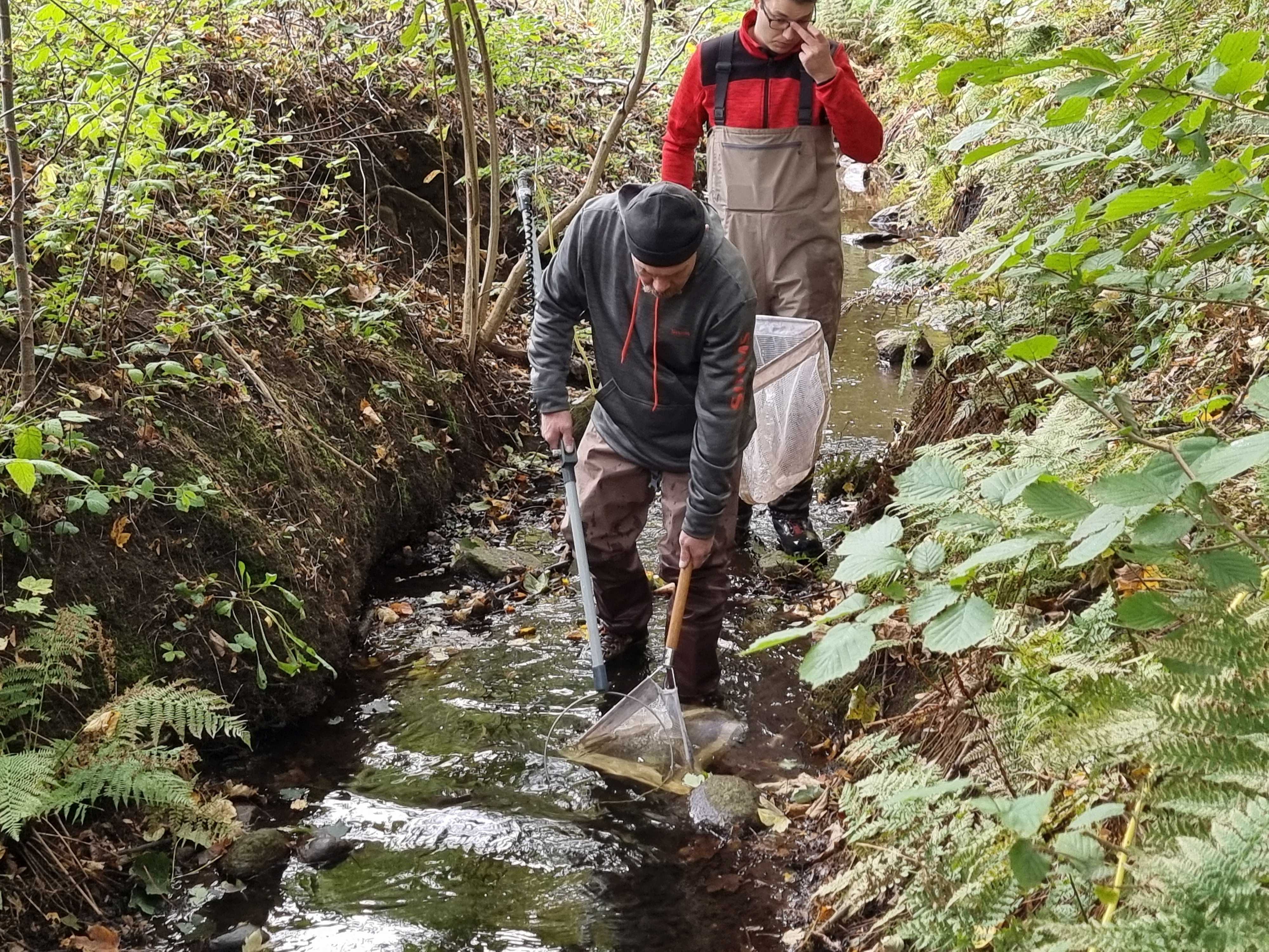 Første delmål blev en gang elektrofiskeri og en bestandsanalyse, både på den nye strækning og ditto på den strækning, vi restaurerede i 2021. På den nye strækning var der ikke skyggen af fisk. Det kommer der forhåbentlig efter projektet.