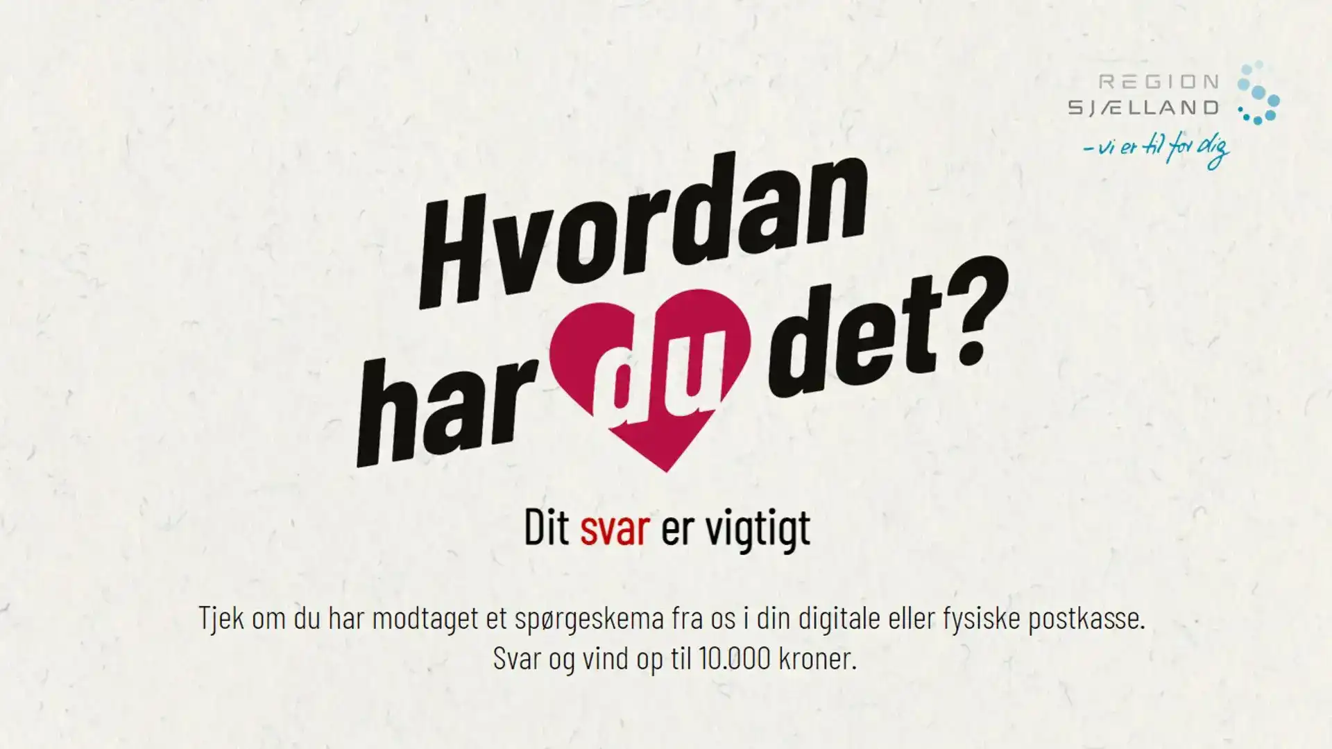 Undersøgelsen ”Hvordan har du det?” handler om sygdomme, mental trivsel, rygevaner, fysisk aktivitet, og meget andet, og blandt besvarelserne trækkes der lod om flotte pengepræmier (se mere om dette i faktaboksen nederst på siden).